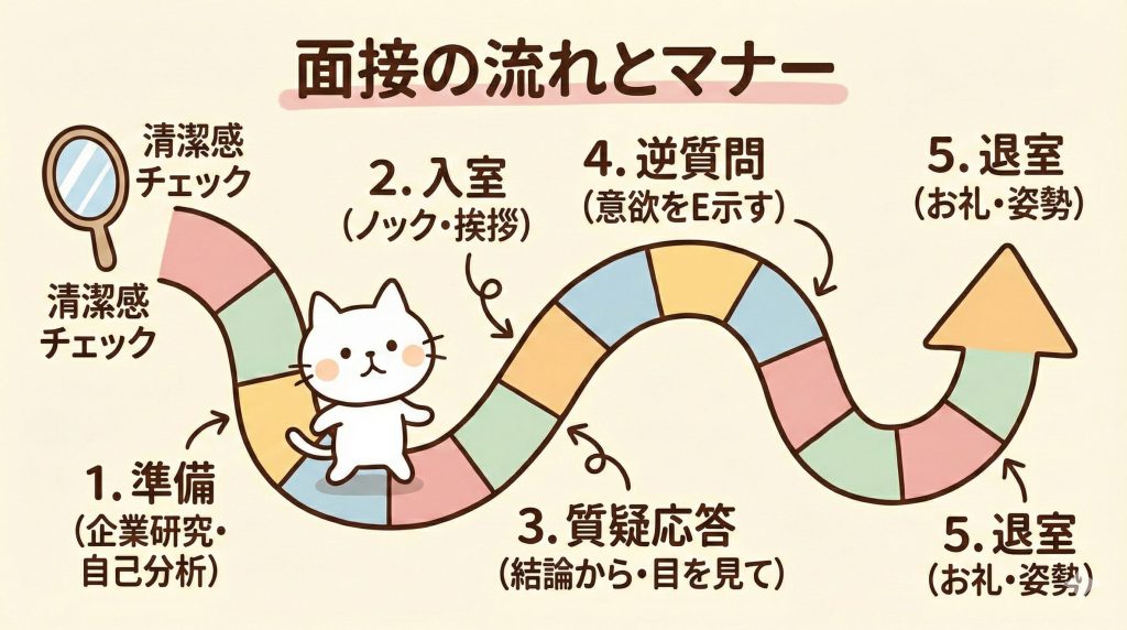 - 事前準備が8割: 企業研究、自己分析、想定質問への回答準備が成功の鍵