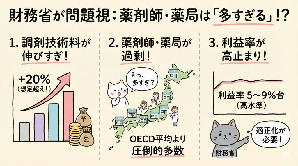 財務省が問題視する3つのポイント:薬剤師・薬局は「多すぎる」