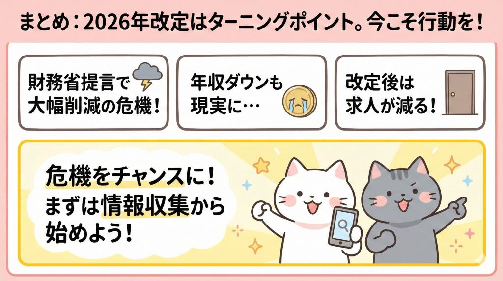 2026年改定は本当に大きな変化になりそうだね。でも、今から準備すれば大丈夫!