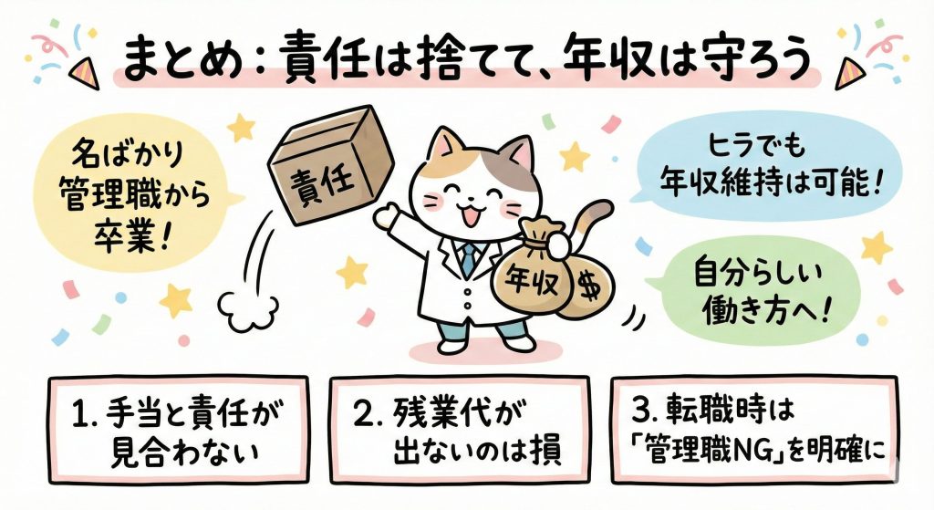 まとめ:責任は捨てて、年収は守ろう