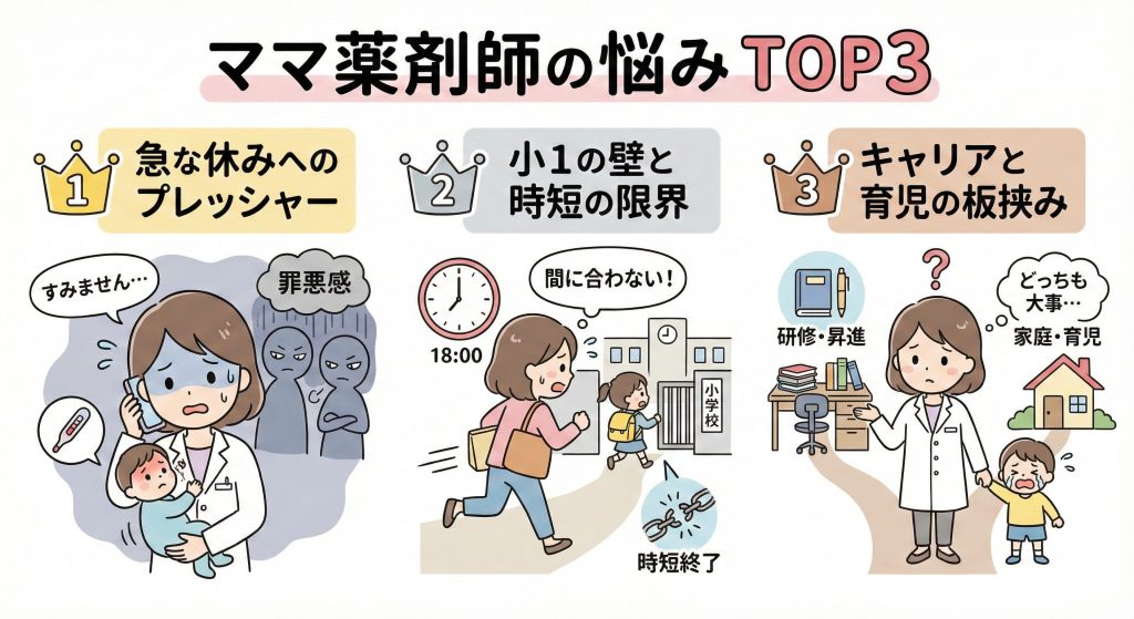 - ママ薬剤師が抱える「3大悩み」と解決策