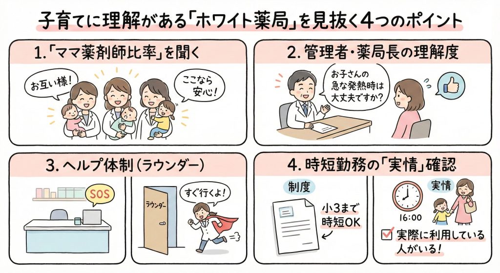- 子育てに理解がある「ホワイト薬局」を見抜く方法