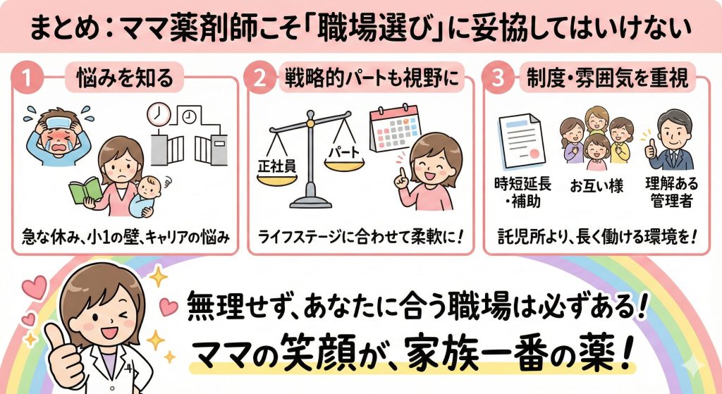 まとめ:ママ薬剤師こそ「職場選び」に妥協してはいけない