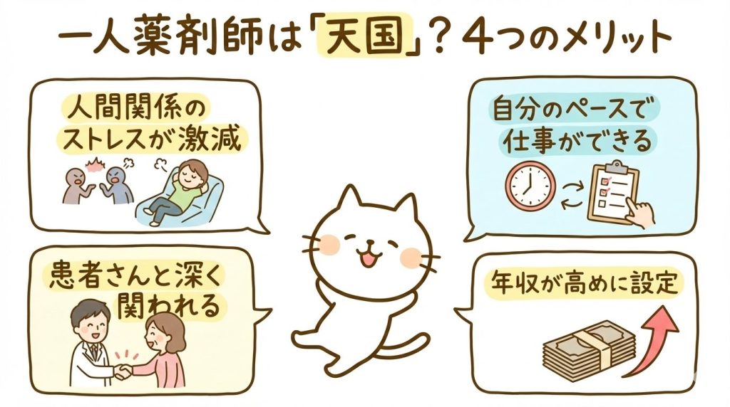 - 一人薬剤師のリアルなメリット・デメリット