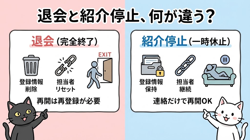 退会と紹介停止、何が違う?