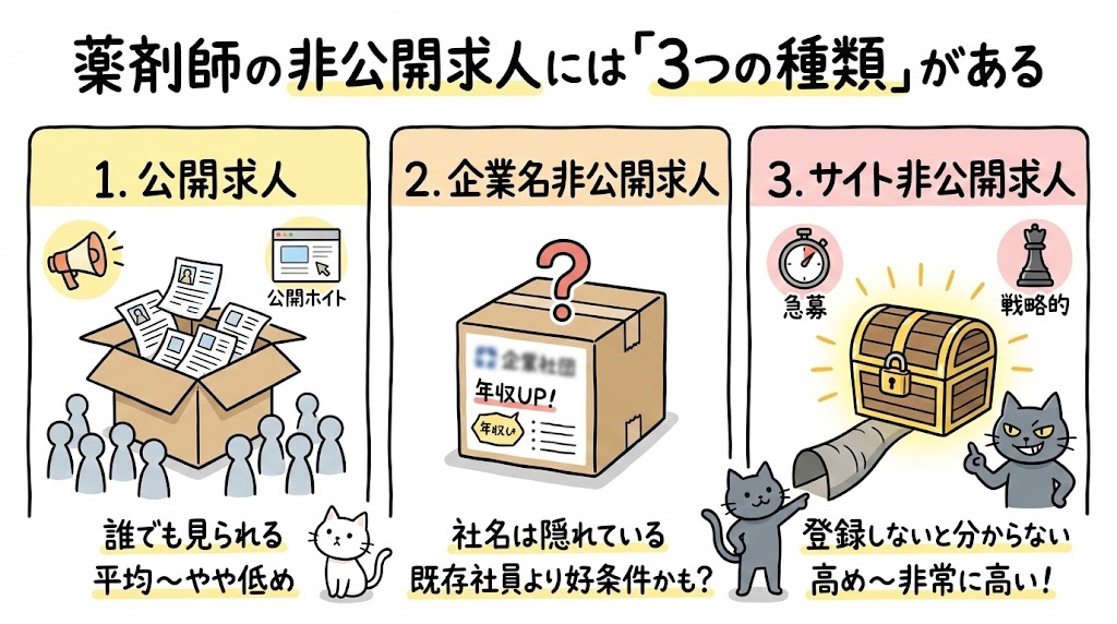 薬剤師の非公開求人には「3つの種類」がある