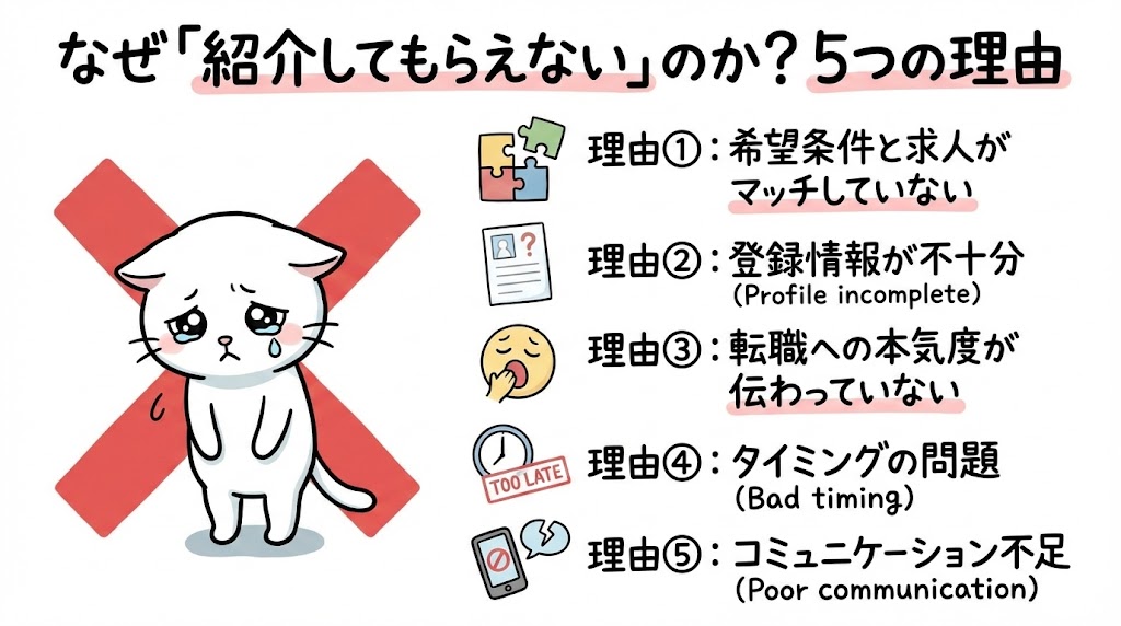 さて、本題です。登録したのに非公開求人を紹介してもらえない理由を、具体的に解説します。