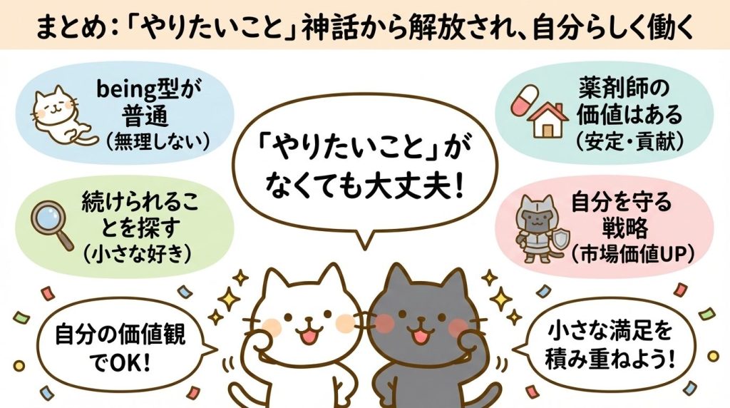 まとめ:「やりたいこと」神話から解放され、自分らしく薬剤師を続ける