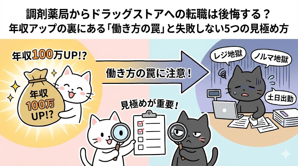 調剤薬局からドラッグストアへの転職は後悔する?年収アップの裏にある「働き方の罠」と失敗しない5つの見極め方
